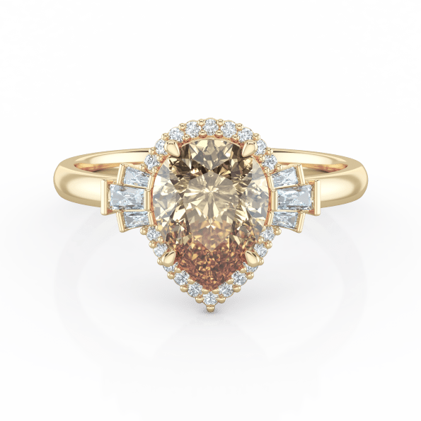 A halo design will have a row of usually smaller stones encircling the larger centre stone. Often it is a pavé style (very small diamonds set in a row) however it can be a half-halo which only borders one side, or a tiara, which is stones bordering just the top side – much like a crown.