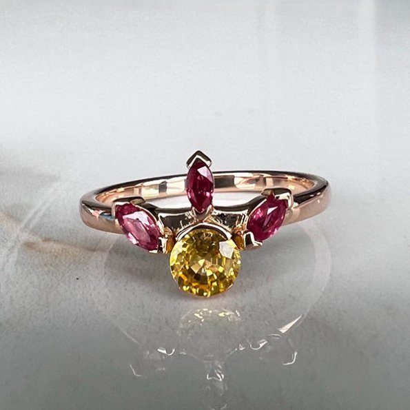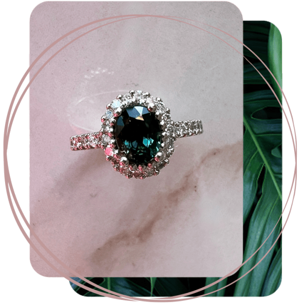 A halo will emphasize the shape and often increase the perception of the size of the central stone. We love a diamond halo around a gorgeous central Sapphire, it really makes the colour pop! You can carry that halo on through the pavé band to create ultimate bling fest. We are also very partial to an ombré halo of colour. This can bring out the subtle colours of the central stone and creates a real unique piece of art!